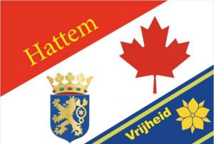 Vier zaken moesten daarin duidelijk herkenbaar naar voren komen: het Canadese Maple Leaf blad, het Hattemer geelblauw met de vijfbladige Mispelbloem, het schild uit het Hattemer wapen en de Nederlandse driekleur. Feitelijk was de Canadese vlag anders tijdens de bevrijding in 45, maar het rode Maple Leaf blad spreekt nu het meeste aan en komt ook mooi uit in het witte vlak. De vlag is ontworpen met hulp van de DTP afdeling van Traffic Supply.